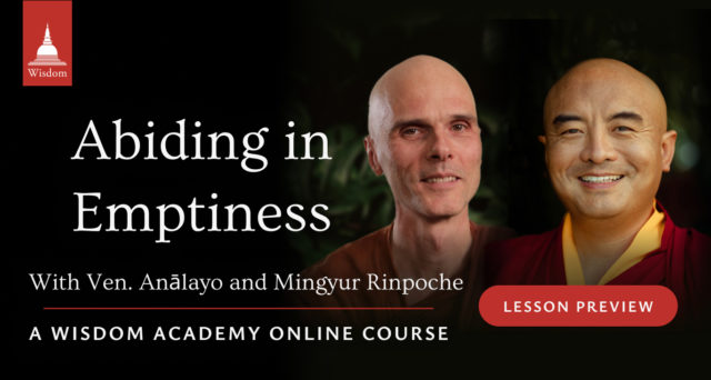 If you haven’t already, make sure you also check out this free preview of lesson 1 of The Wisdom Academy’s online course Abiding in Emptiness. In this groundbreaking course, Bhikkhu Anālayo and Yongey Mingyur Rinpoche will take you on a profound exploration of meditation through the lenses of Mahāmudrā and early Buddhism.