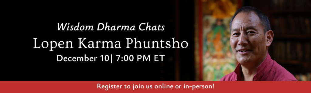 • Join Lopen Karma Phuntsho and host Daniel Aitken on Wednesday, December 10, 2025, at 7:00 PM ET for our next episode of Wisdom Dharma Chats. If you are in the New York City area, we welcome you to join us for the in-person audience. Doors open at 6:30 PM ET. No pre-registration or ticket necessary!
