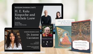 • Register for one of our upcoming Wisdom Dharma Chats hosted by Daniel Aitken. In October, we’re hosting H. E. Kalu Rinpoche with his coauthor, Michele Loew, to discuss their new volume The Yoga of Niguma, and later in the month Daniel will be joined by Dr. Joanne Cacciatore, the bestselling author of Bearing the Unbearable.